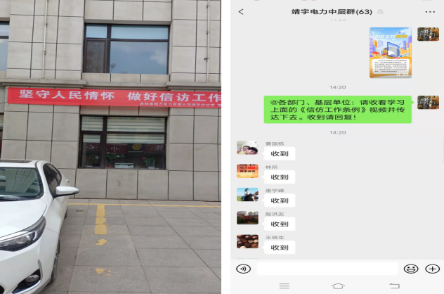 根据宣传月活动要求,靖宇分公司综合管理部结合当前疫情防控严峻形式,在办公大楼前悬挂了宣传条幅并在中层工作群下发了观看《信访工作条例》宣传视频的通知,要求各部门各单位负责人层层落实,以自主观看学习的方式,让全体职工学好《信访工作条例》并作好宣传工作。