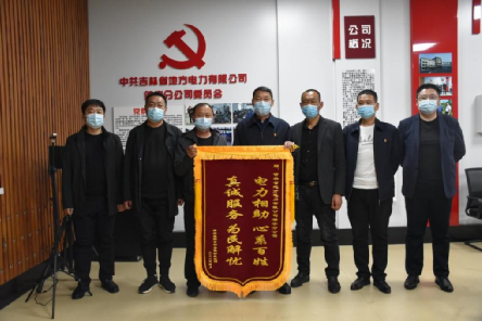 “感谢地方电力靖宇分公司对联合村黄泥河屯电力需求的大力支持,今天我代表全体村民送上一面锦旗,以表示真诚的感谢”。2022年5月24日,联合村村部负责人庄茂成将印有“电力相助心系百姓,真诚服务为民解忧”的锦旗赠送给地方电力靖宇分公司,对分公司在疫情防控期间,及时解决百姓用电难题表示感谢。