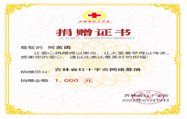 枫林电站项目分公司副经理何英勇同志,作为一名行政副经理兼纪检委员,作为公司疫情防控工作的重要监督关口,自接到地方水电集团关于涉疫人员排查通知后,他迅速组织人员对枫林电站全体员工及家属排查工作,累计排查126人次,详细统计人员外出情况及是否接触过密接、次密接人员;经排查公司全体职工无外出及隔离人员。每日对机关办公楼内、发电厂房、大坝值班室、餐厅、厨房、员工宿舍等区域的全面消毒工作进行监督检查,主动联络,选购防护口罩、医用酒精、消毒液等防护物资。此次防疫物资使用时间紧急,采购到货时间相对不固定,他经常牺牲大量休息时间,全力保障公司防疫物资供应充足。“守望相助、共克时艰”在疫情初始,传来吉林省医用物资短缺的消息。他看在眼里,急在心上,第一时间就通过吉林省红十字会为吉林省疫情防控捐款。他说:“危难时刻,我必须挺身而出,这是一名党员的义务和责任。