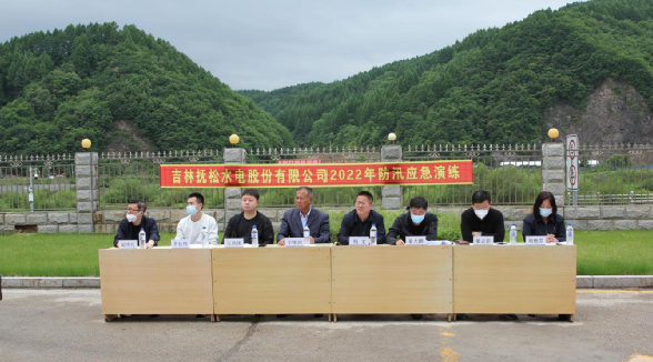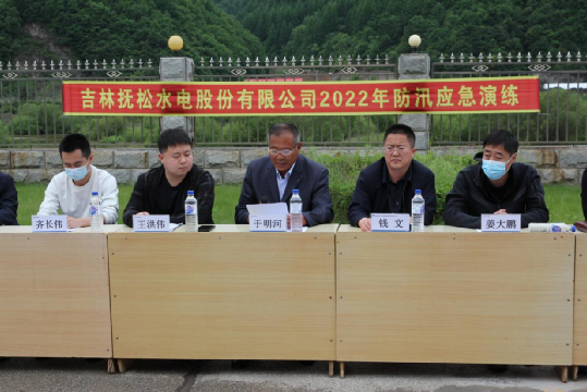 为了深入贯彻落实习总书记关于安全生产工作的重要讲话精神,进一步加强公司防汛安全工作,检验防汛应急预案的合理性和可操作性,磨合内外部协调联动响应机制,提升公司防汛应急处置能力,按照地方水电集团和上级防汛部门工作要求,6月17日上午,发电抚松分公司在北江发电二厂组织开展了2022年防汛抢险应急演练。抚松县应急管理局纪检书记兼防汛办主任于明河、抚松县应急管理局应急指挥中心主任王洪伟、抚松县防汛办副主任齐长伟、抚松县水利局副局长姜大鹏、抚松县水利局防洪抗旱预警监测中心主任姜志臣一行莅临现场进行了指导。