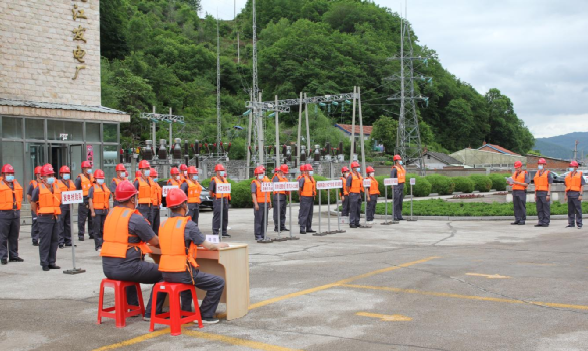 演练共模拟了两个场景:一是抚松县境内遭遇强对流雷雨天气,因电网事故联网线路跳闸,1-6号机组甩负荷停机,厂用电消失;二是抚松县境内发生强降雨,二厂尾水水位涨至▽426.85米,达到50年一遇洪水标准,公司启动“防汛抢险三级响应”。