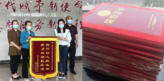 “感谢地方电力通化分公司党委及您单位全体疫情防控志愿者们,你们帮助文化社区抗疫,解决了许多防控的实际问题并多次主动与我们联系对接请缨领派任务,既当“守门员”、又当“宣传员”,不辞辛苦、勇挑重担,我们特来送上锦旗表示感谢!”6月17日,通化县文化社区工作人员把一面写有“鼎力相助抗疫情,践行初心担使命”的鲜红锦旗和十余本有温度的志愿者荣誉证书送到地方电力通化分公司,对分公司党委和下沉一线的疫情防控志愿者表达诚挚谢意。
