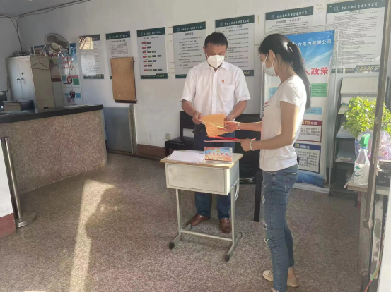 基层党员在“三亮”活动中,向用户发放安全用电宣传单