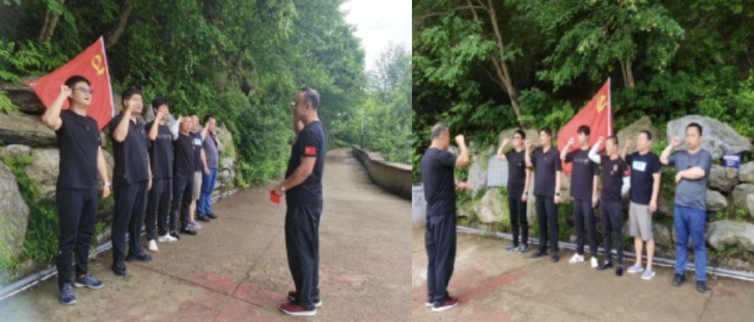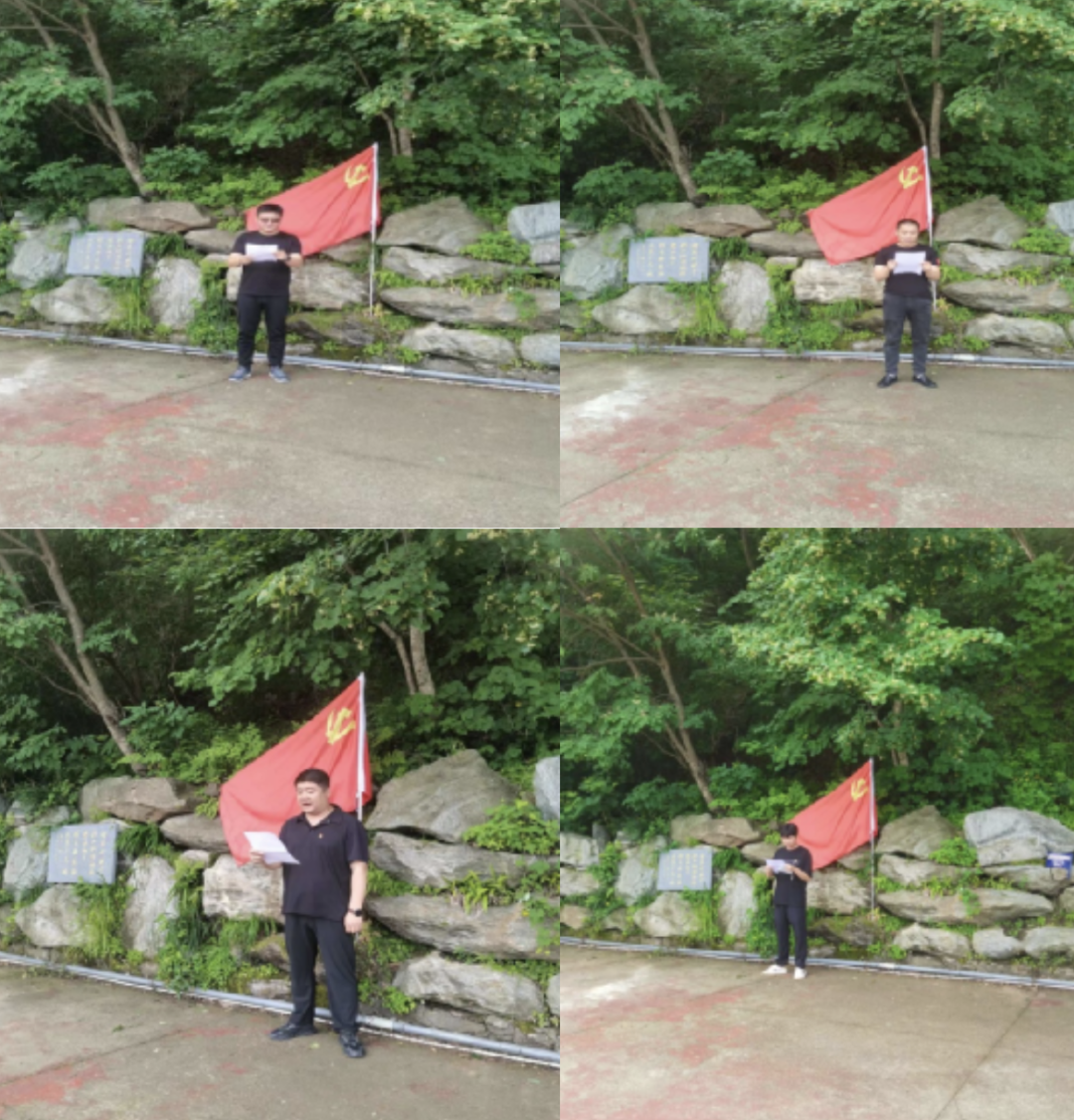 重温入党誓词,就是重温入党时的决心和信念,始终铭记入党誓言,履行党的使命,积极发挥模范,争做“让党放心、让群众满意”的合格党员。活动中,支部全体党员重温入党誓词,庄严宣誓。党旗下,洪亮而整齐的声音,激荡在山间,每位党员都心潮澎湃,热血沸腾。