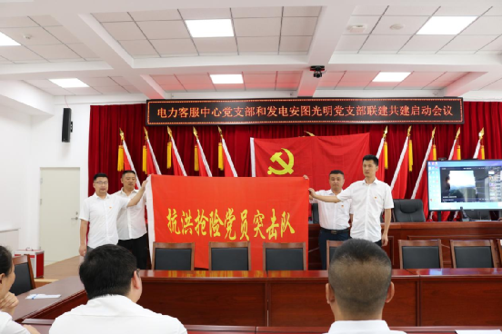 启动会议上,双方就支部基本情况、双建双创活动开展情况、安全生产、文明创建等方面进行了座谈,同时提出要认真学习发供电业务,工作开展到哪里,党建工作就推进到那里的好思路,希望通过理论共学、资源共享、活动共办、品牌同树,明确共建目标、强化优势互补,提升共建质量,高质量推进基层党建工作开展。随后,与会党员一同重温了入党誓词,观看了《生命重于泰山》安全警示教育片,成立了抗洪抢险突击队,并由吕原鸿和张霄博向联建支部进行授旗。