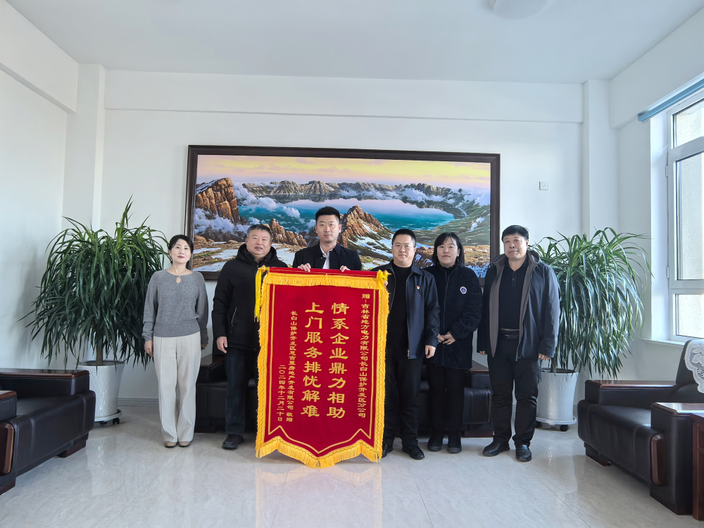 12月20日,恩都里景区负责人专程来到长白山分公司,送上绣有“情系企业鼎力相助,上门服务排忧解难”的锦旗,并表示,地方电力工作人员主动上门服务企业,他们的辛勤付出和专业服务为景区打造优良的旅游环境做出了突出贡献。衷心感谢长白山分公司为助力长白山旅游的繁荣发展增添了十足底气,激发了无穷动力!