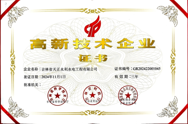 近日,天正工程公司收到吉林省科学技术厅、吉林省财政厅、吉林省税务局联合颁发的高新技术企业证书,成功荣获吉林省2024年度高新技术企业认证,这不仅标志着天正工程公司正式跻身省级高新技术企业行列,更代表天正工程公司将开启高质量发展的崭新篇章。